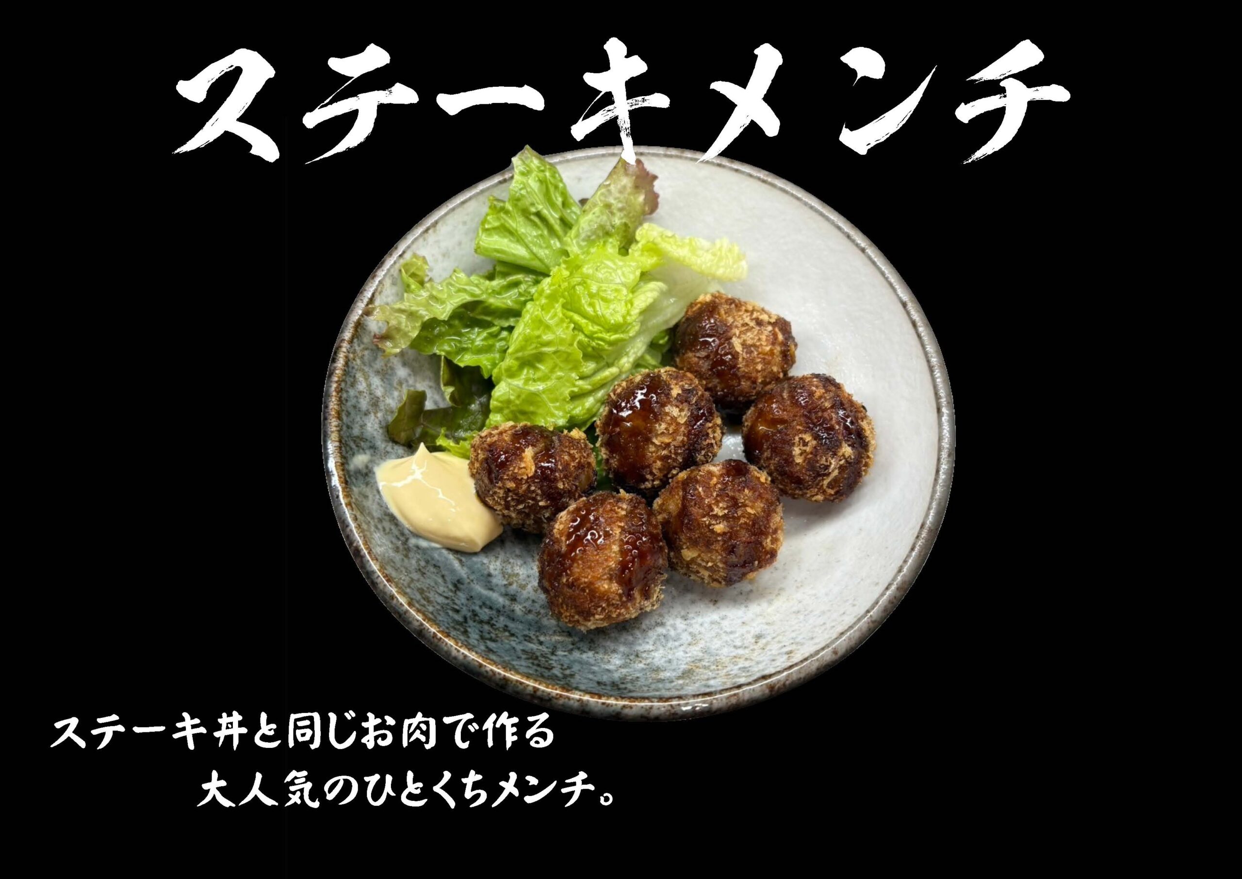 百一膳自慢のステーキ丼と同じ肉を使い、外はカリッと中はジューシーに仕上げた一口サイズの特製メンチカツ。