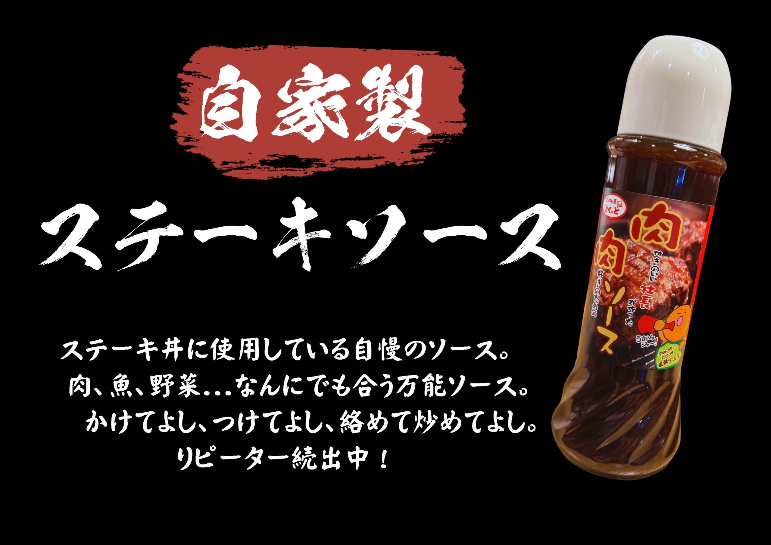 ステーキ丼に使用している、百一膳自慢の無添加・自家製ステーキソースがご家庭用として登場!