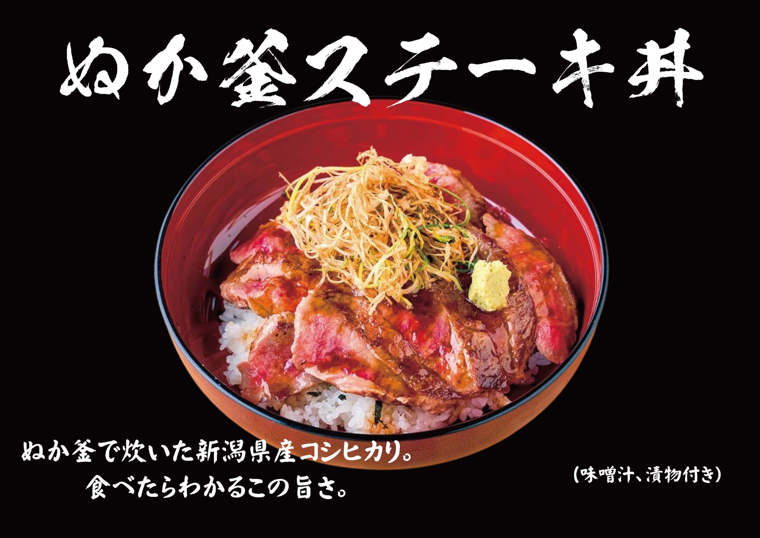 ぬか釜ステーキ丼は、当店の誇る看板メニューです。